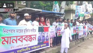 অন্যদিকে মারজিয়া আকতারের মুক্তির দাবীতে মানববন্ধন করেন নরসিংদি এলাকার সামাজিক সংগঠনের কুছু প্রতিনিধি ও নরসুংদি জর্জকোর্টের এডভোকের সিরিন সুলতানা। তারা নিরপরাধ মারজিয়ার মুক্তিচান এবং নানান কর্মসুচির আভাস দেন।