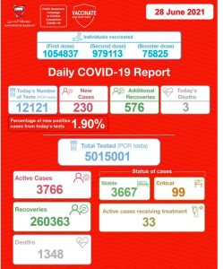 বাহরাইনে কোভিড-১৯ আকরান্তের সংক্ষা ২৩০